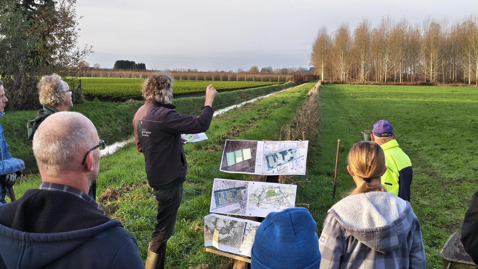 Ongeveer 200 jaar geleden was dit een erg moerassig gebied. Door de jaren heen is het ontgonnen en omgevormd tot weiland. Nu geven we het terug aan de natuur. Geïnspireerd door het verleden brengen we kleinschalige landschapselementen aan, zoals bosjes en bomen. Samen met nieuwe poelen creëren we niet alleen een mooi landschap, maar ook kansen voor biodiversiteit.